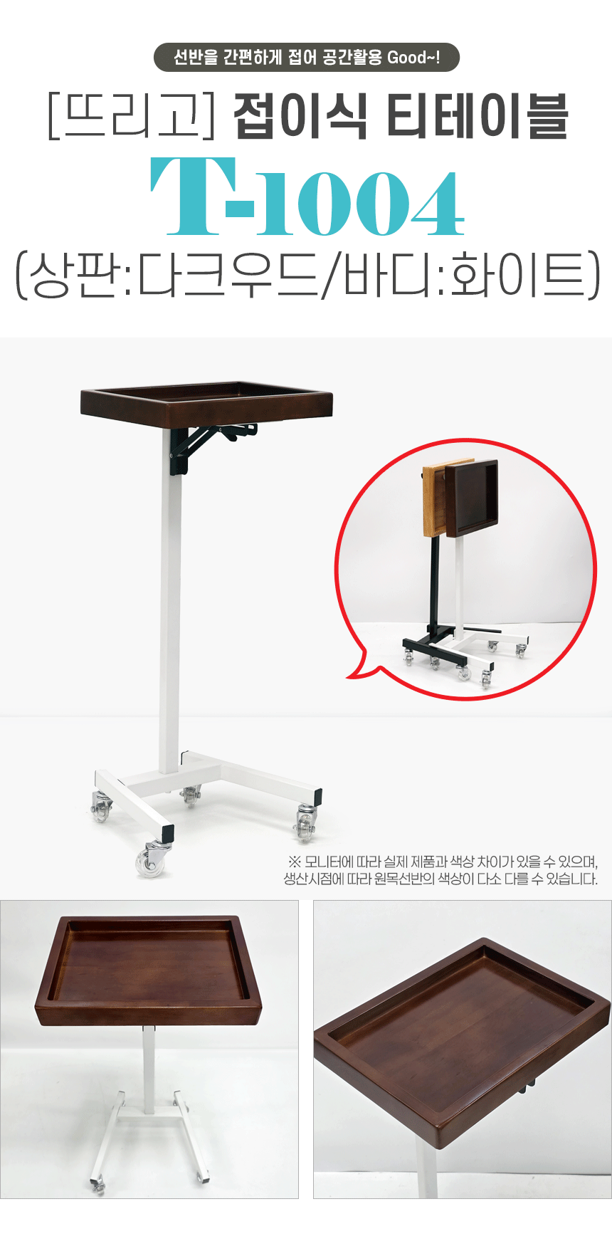 [뜨리고] 접이식 티테이블 T-1004 (상판:다크우드/바디:화이트) -사은품제외-