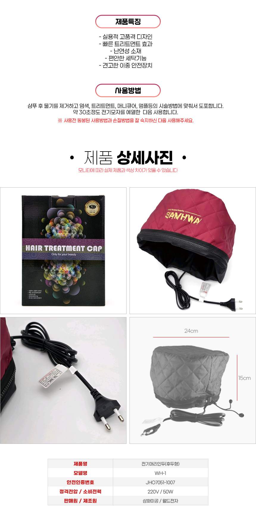 | 품명 및 모델명 | 전기 머리인두(후두형) WH-1 / JHO7051-1007 |