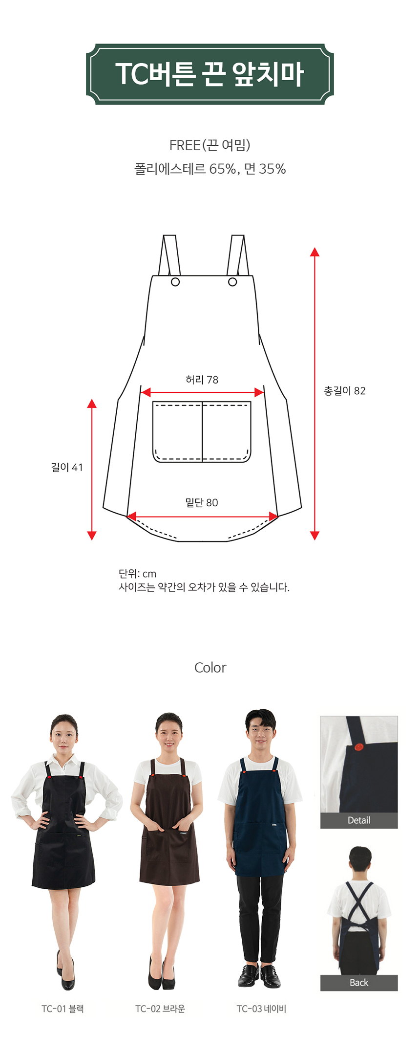 --- [가우니아] TC 버튼 끈 앞치마 -사은품제외-