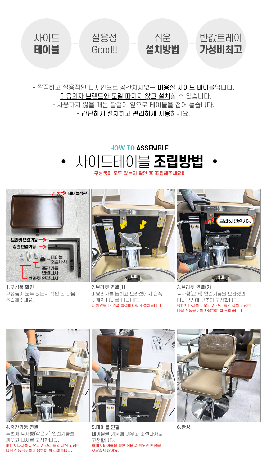 [뜨리고] 미용실 사이드 테이블 (셀프설치형) -사은품제외-