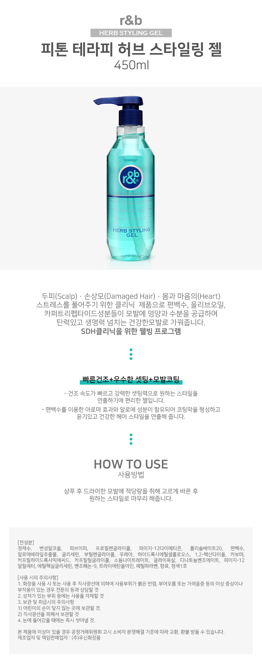 | 제품의 사용목적/방법 | 샴푸후 타올드라이하여 물기를 닦아낸 다음 적당량을 취하여 모발에 바르고 원하는 스타일로 마무리합니다 |