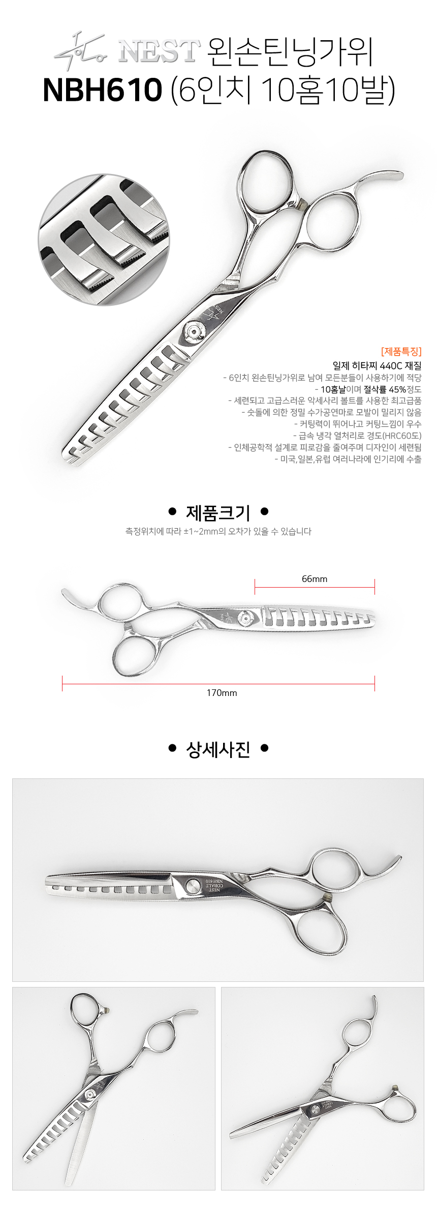 NEST/왼손틴닝가위 NBH610 (6인치 10홈10발)