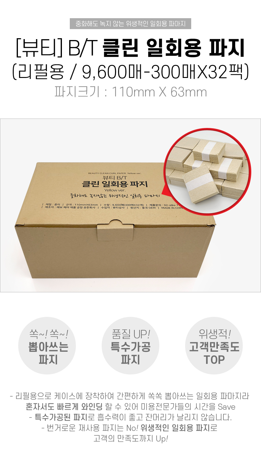 [뷰티] B/T 클린 일회용 파지 (리필용/9600매-300매x32팩) ◆10번◆